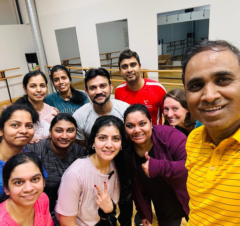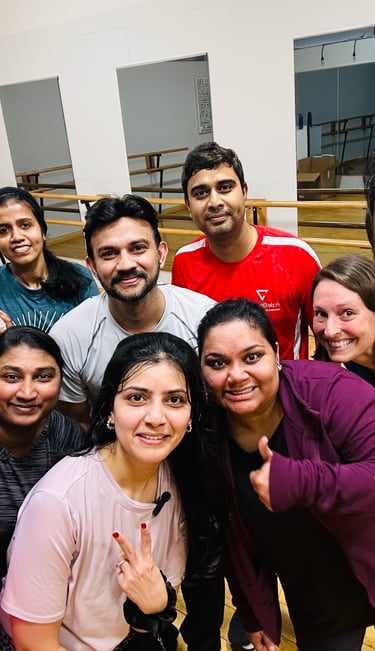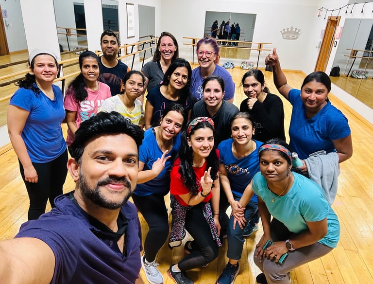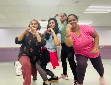 High energy dance classes for young adults with focus on teaching Indian film songs.